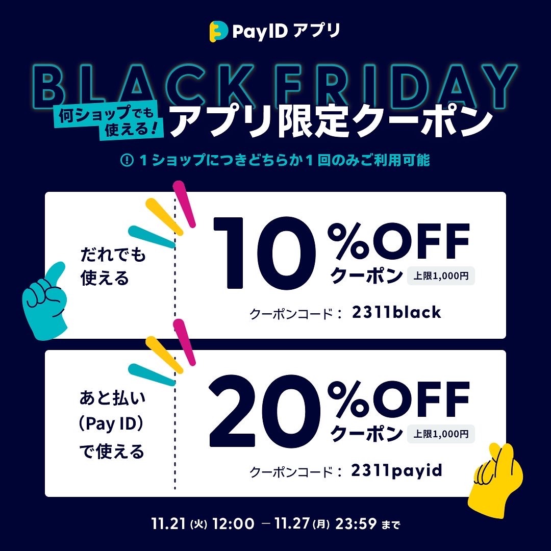 🖤PAY IDアプリにてあと払い決済で使える20%off