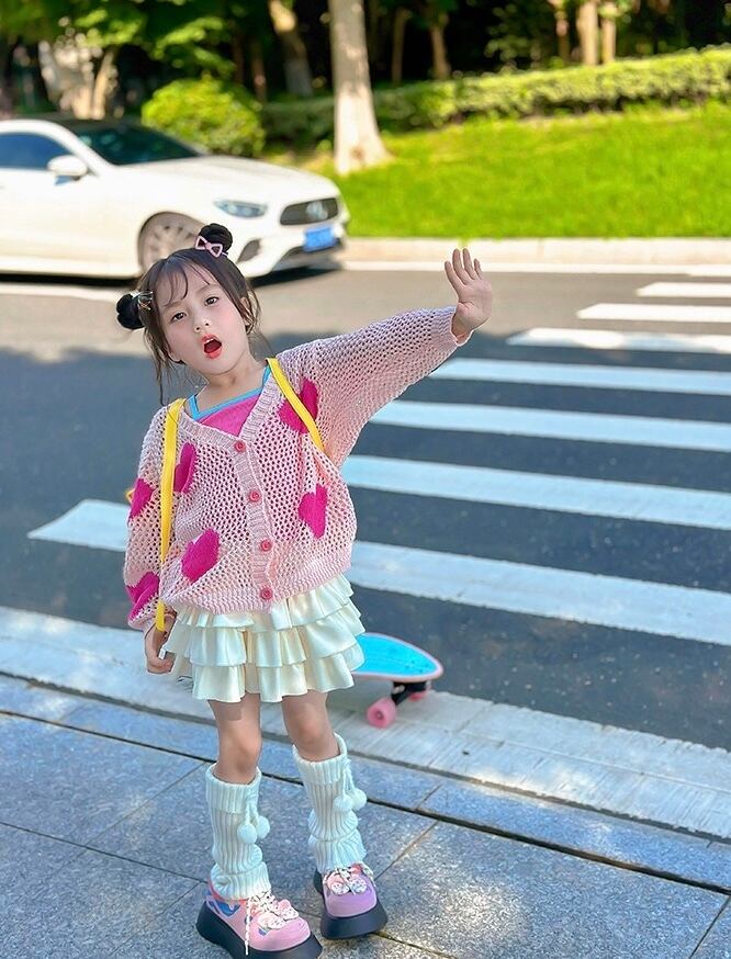 ✔ ピンクのハートが目を惹くメッシュカーデで甘さたっぷり