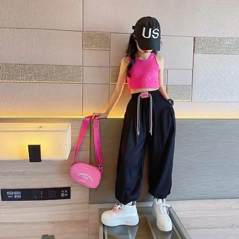 ✔ ロゴ入りTシャツ+タンクトップ+ゆるパンツのセットアイテム