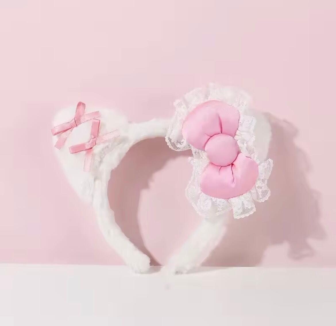 ふわふわ素材にレースとリボンをあしらった、ガーリーで可愛らしいカチューシャ