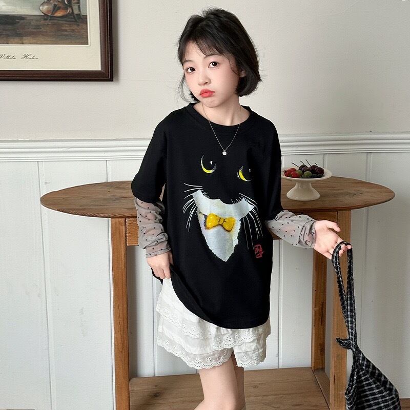 ママとおそろい!黒猫リンクコーデTシャツ(kids)