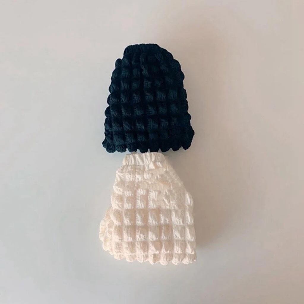 今はやりのポップコーン生地のパンツです!