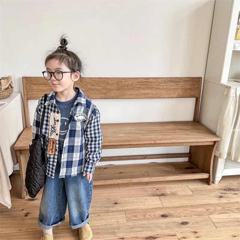 チェックがパッチワークのように組み合わさった可愛いシャツです✨