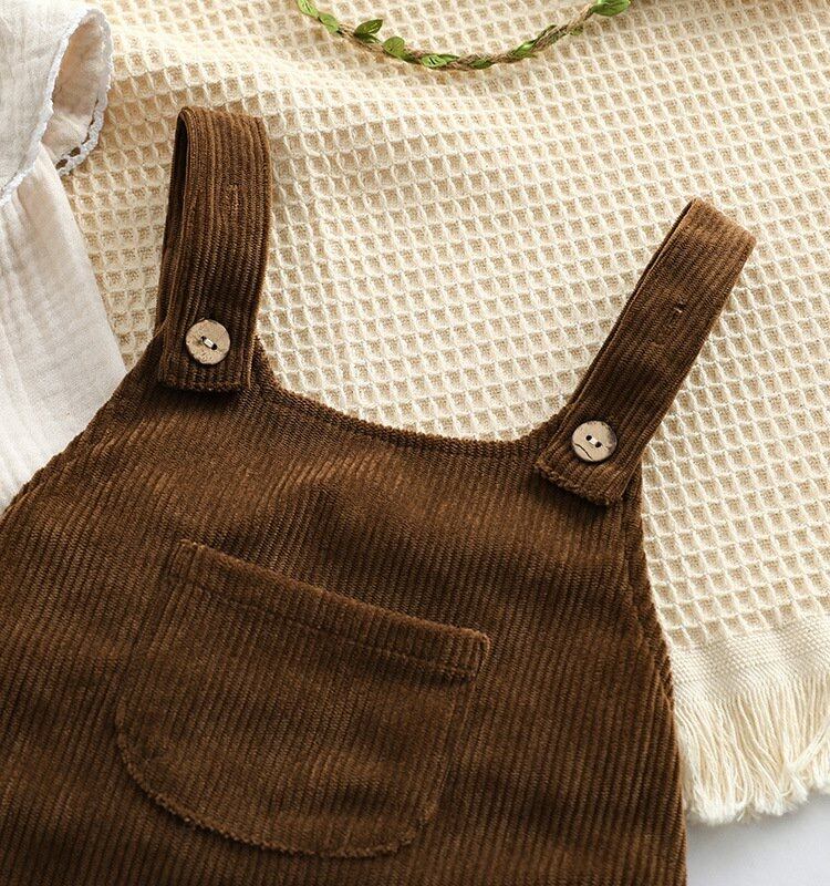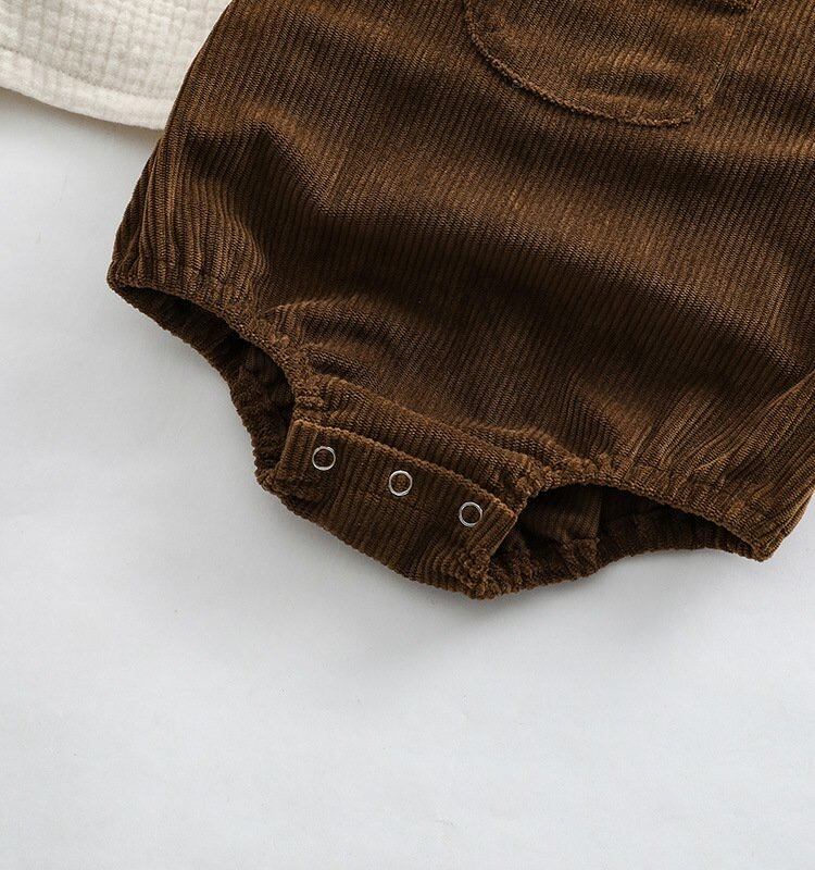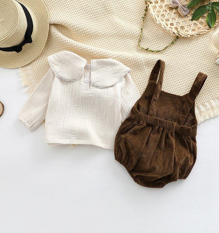 コーデュロイのロンパースと、リスの刺繍が可愛いビッグカラーのトップスです❣️