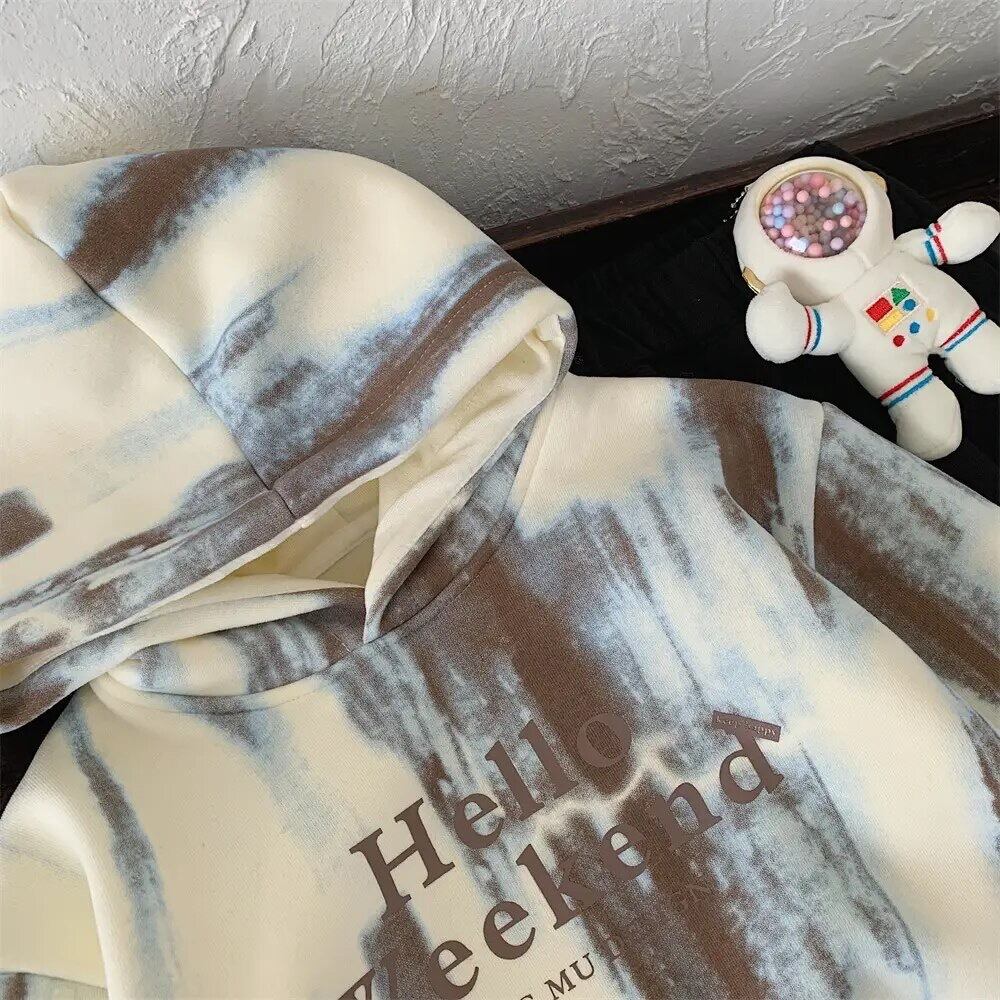 暖かいミルクに、チョコレートが溶けたような柄が可愛いパーカーです。