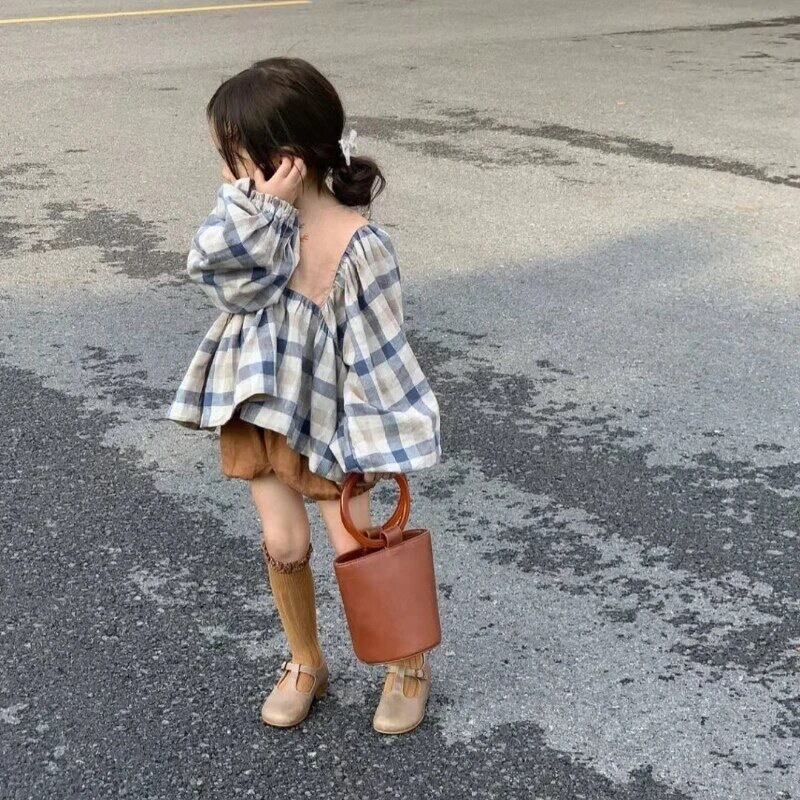 大きなパフスリーブがキュート♡使いやすい色使いで、お子様のお出かけ着にぴったり!
