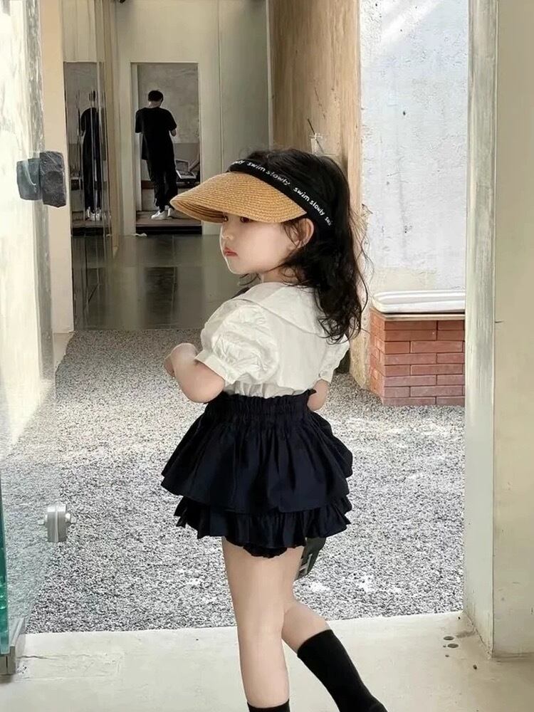 ぽわんと膨らんだお袖が可愛いパフスリーブブラウスと、大きめフリルが可愛いミニスカートのセットアップ!