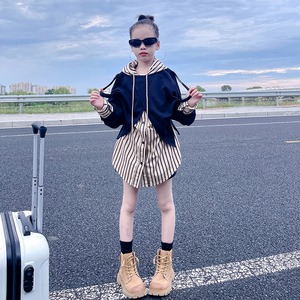 ママとお揃い!フード付きストライプシャツワンピース セットアップ
